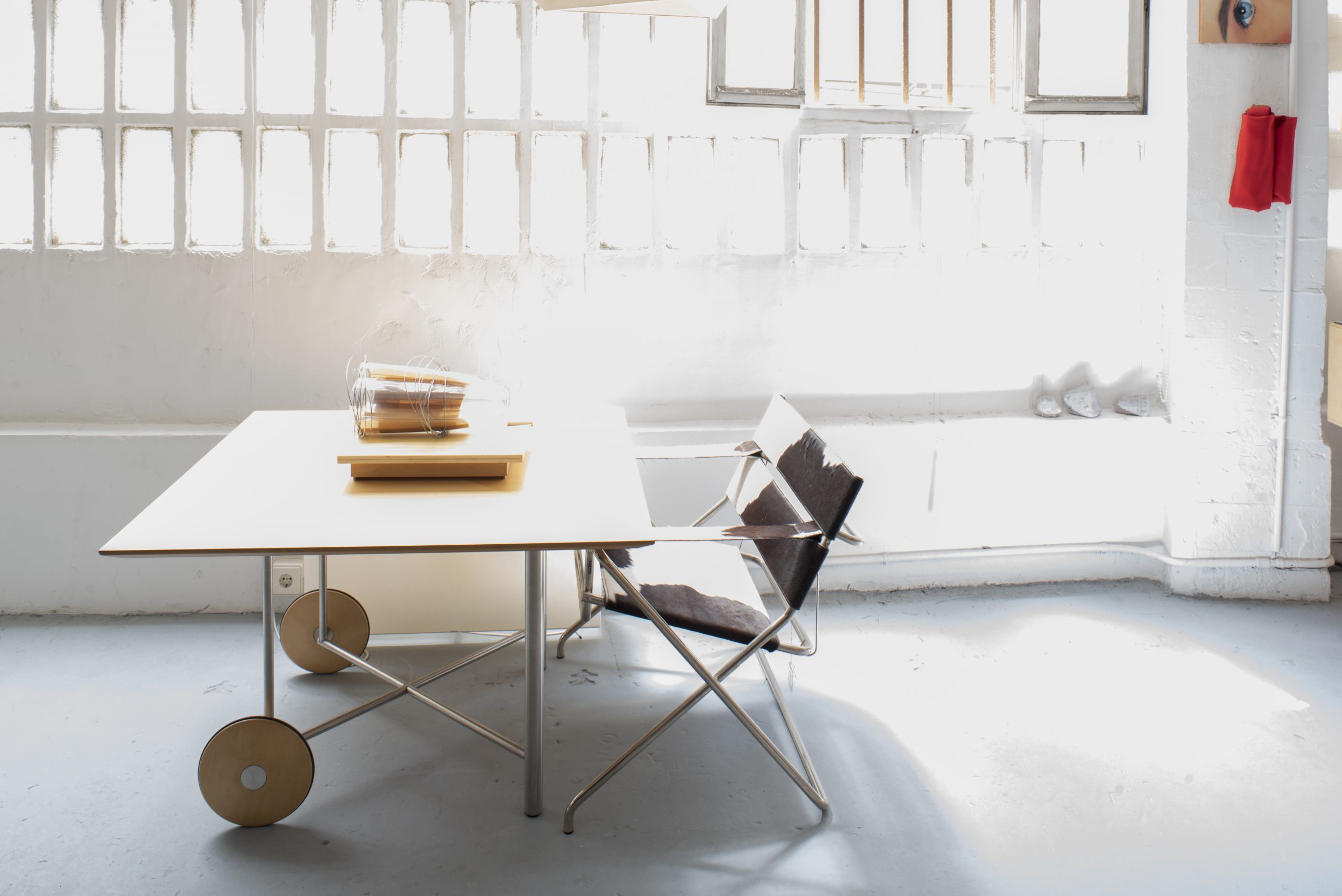 El arquitecto y segundo director de la Bauhaus Hannes Meyer (1884/1954) proyectó la instalación «Co-op interieur 1926» como un espacio vacío y blanco, y es esa apertura con que Meyer dota a su espacio, la cualidad que ha permitido múltiples configuraciones posteriores. Si las nuevas sociedades pueden hoy ser definidas como sociedades del trabajo inmaterial, es decir, sociedades del conocimiento,debemos reconocer entonces la labor de las y los artistas como productoras y productores que operan en ellas como genuinos participantes en los intercambios sociales de producción intelectual y producción deseante.